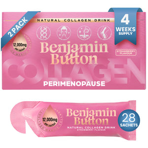 Коллаген для перименопаузы клубничные саше – упаковка из 14 шт. (запас на 2 недели) – 12,000 мг морского коллагена с витексом, витаминами и гиалуроновой кислотой